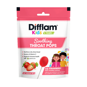 Difflam Kids Soothing Throat Pops help to soothe dry, tickly throats while supporting children’s immune health.
